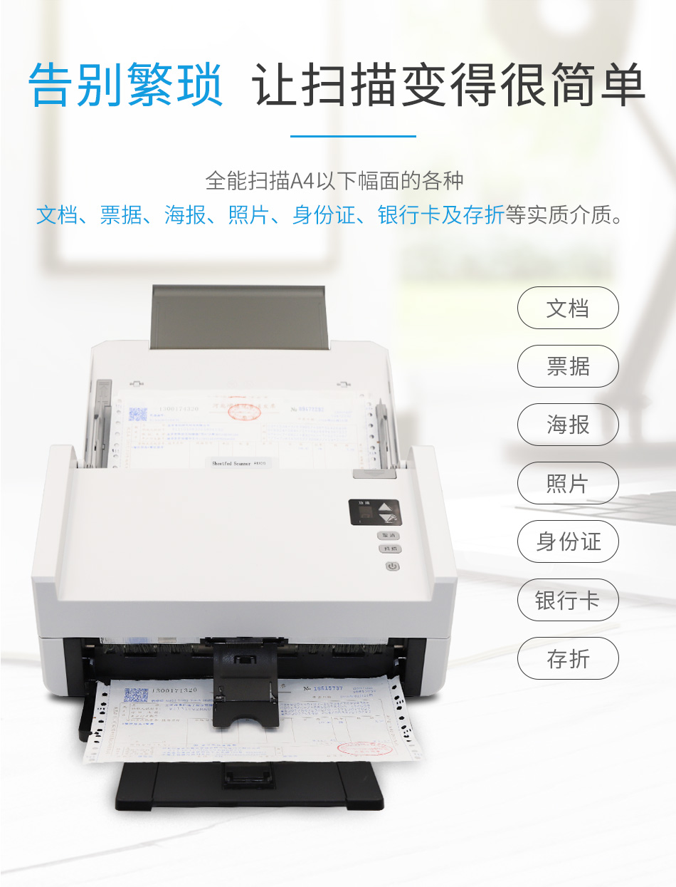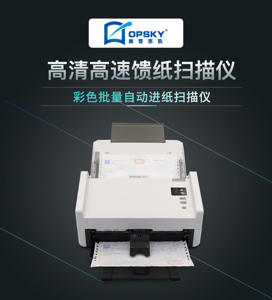 奧普思凱(OPSKY) 饋紙式掃描儀高清彩色雙面連續大容量自動進紙辦公設備發票文檔多介質掃描 OK8