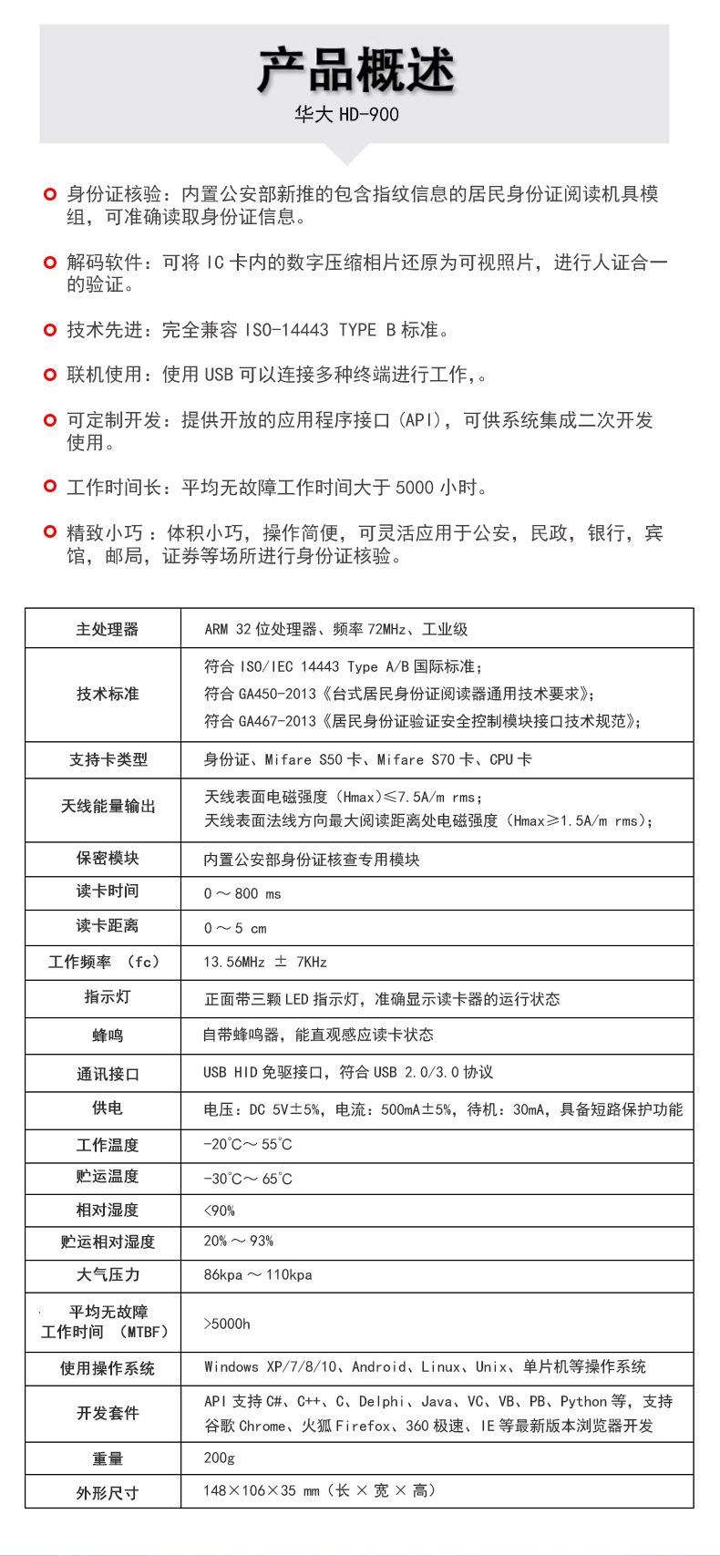 (*由于產(chǎn)品升級或其他原因,華大身份證讀卡器產(chǎn)品實際參數(shù)有可能變更,以實際產(chǎn)品為準。本文中的所有陳述、信息和建議也不構(gòu)成任何明示或暗示的擔(dān)保)