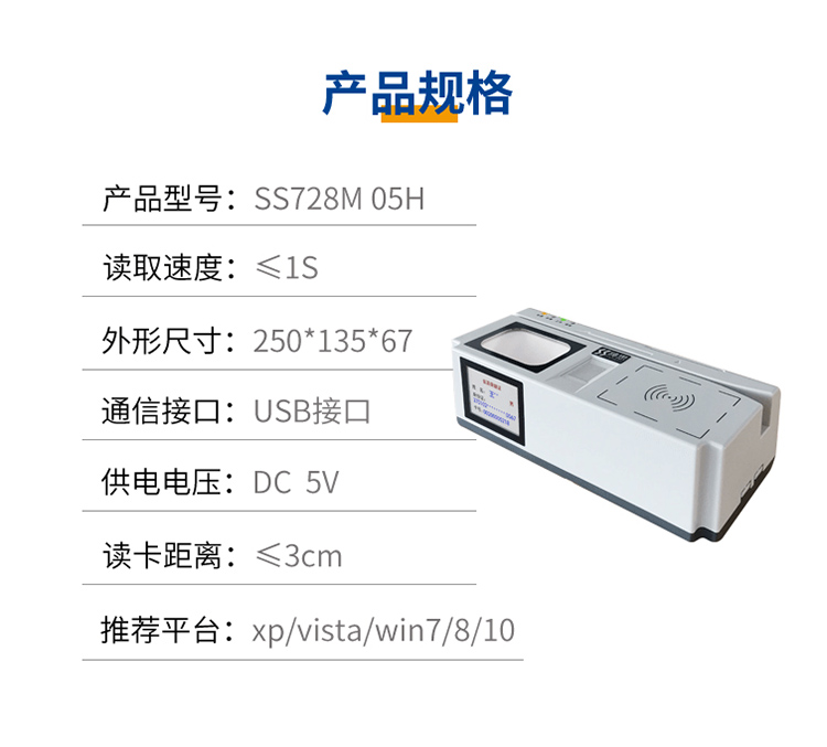 (*由于產品升級或其他原因,神思社??ㄗx卡器SS728-M05H產品實際參數有可能變更,以實際產品為準。本文中的所有陳述、信息和建議也不構成任何明示或暗示的擔保)
